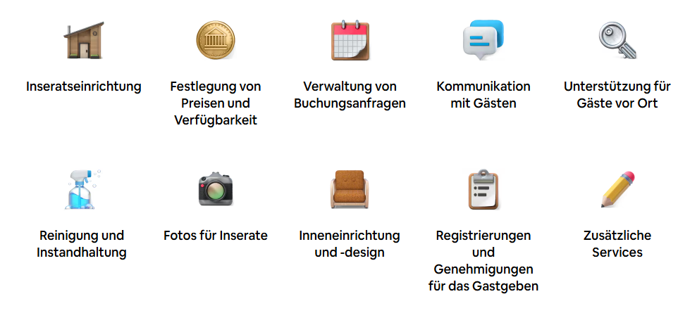 Wir bieten die Vermietung Ihrer Immobilie (Zimmer, Wohnung, Haus, B&B, Hotel usw.) in der Schweiz oder im Ausland auf unseren Website (Referenzbeispiel) und den wichtigsten internationalen Vermietungsplattformen (Booking, Airbnb, Google Hotels) an sowie Unterstützung bei der Verwaltung gemeinsam genutzter Reservierungen nach Ihren Bedürfnissen: